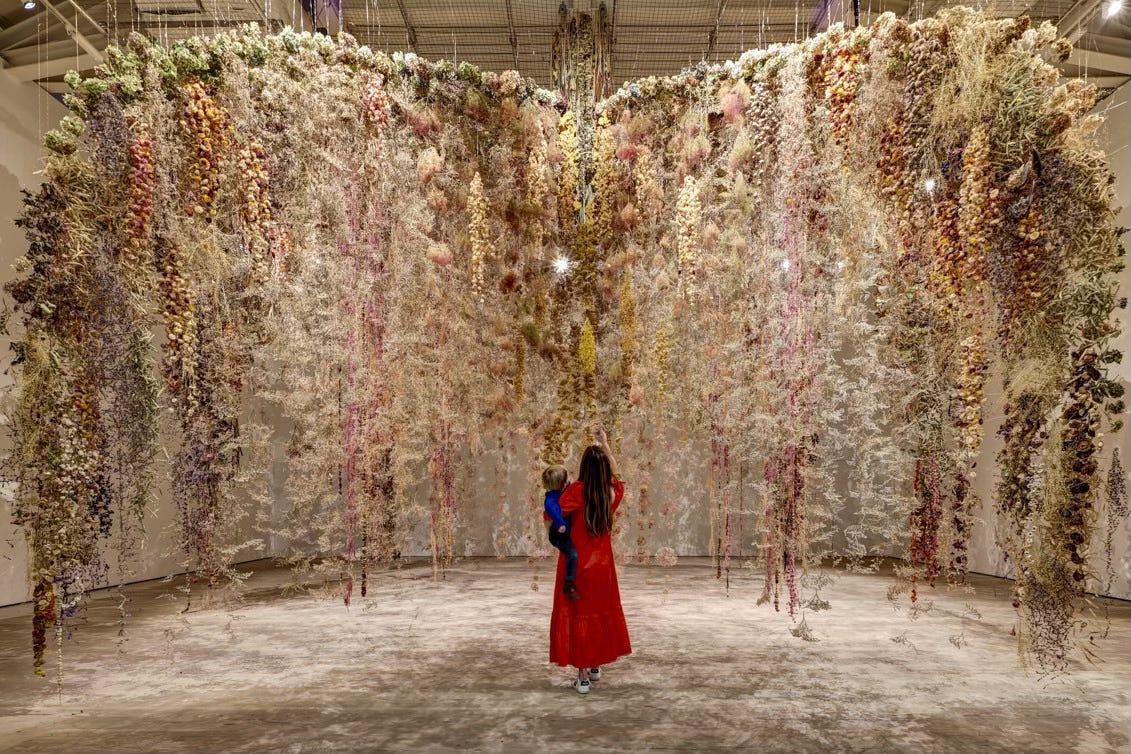 My daughter delighted me by requesting that we go to Flowers: Flora in Contemporary Art and Culture - every iteration of flora, including a whole room installation at the Saatchi Gallery. Sharing the experience of an art exhibition with someone you like very much is a delight - they always see things you do not.