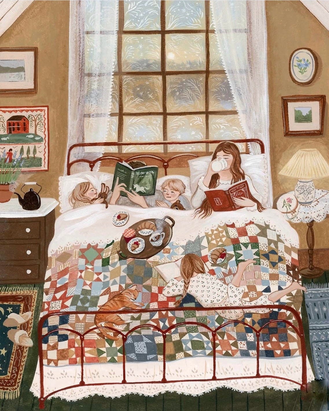 Hello! It feels ages since we sat down and had the virtual equivalent of a cup of coffee. Possibly because January stretched over its habitual 97 days. How are you? What news from your world? Tell me what you’re reading - in bed or otherwise. I love this by Dutch artist Robin Pieterse - it reminds me of when my children were little and bundled into bed …